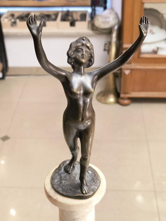 Figurka wykonana z brązu, na marmurowym postumencie.
