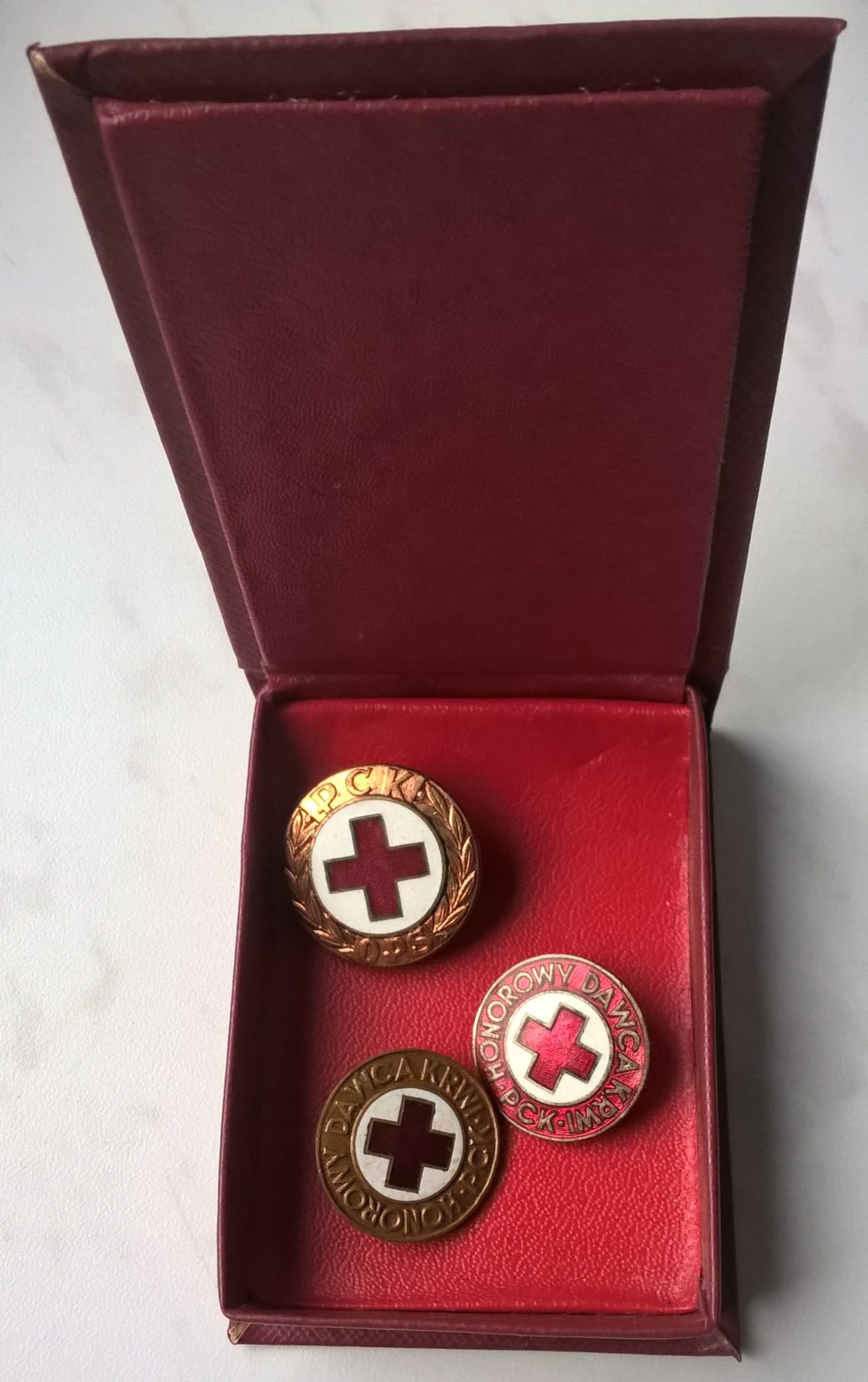 – 2 x Honorowy Dawca Krwi PCK – średnica 2,1 cm.